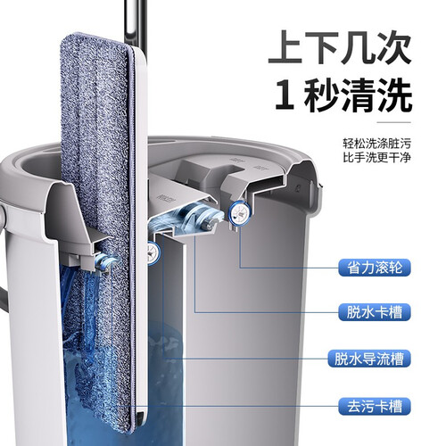 采用物理清洁设计,不添加化学物质,呵护地板不受损。可180度旋转,轻松搞定卫生死角,清洁无压力。具有省力滚轮,移动便捷,更省心。