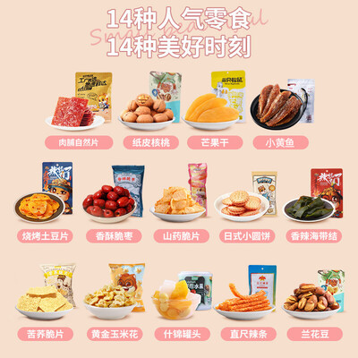 想吃零食又不知怎么选,三只松鼠大礼包满足你。内有13种种类小零食,每种都能为你解馋。无论是送人还是自己吃都非常不错喔!
