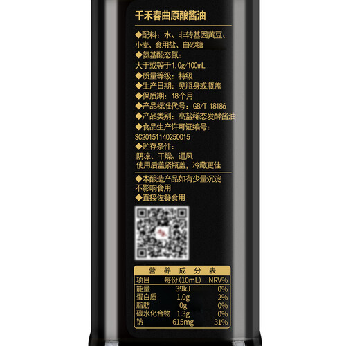 千禾 春曲原酿特级生抽 零添加