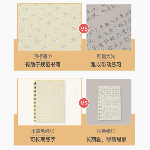 采用笔画、偏旁、间架结构等凹槽练习,稳固基础,才能摆脱丑字。同时采用描红临写的方法,加厚的页数,让你挥洒自如。