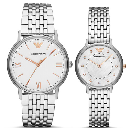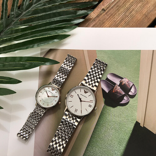 阿玛尼 钢制表带防水商务情侣表