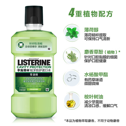 添加桉叶油素,减少牙菌斑,清凉口气,让口气持久清新;采用四种天然植物精油,不添加酒精,温和无刺激,倍感舒适。
