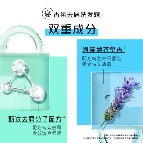 采用去屑分子配方,有效去屑,发丝清爽柔顺,清爽轻盈。添加高级浪漫薰衣草香,秀发持久清香,整天都有好心情。