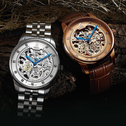 依波路镂空机芯机械男表
