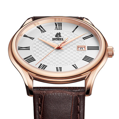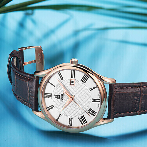 经典罗马时符,彰显男士不凡品位。瑞士制造石英机芯,走时稳定。牛皮表带,柔软亲肤,佩戴舒适,防水功能,使用方便。