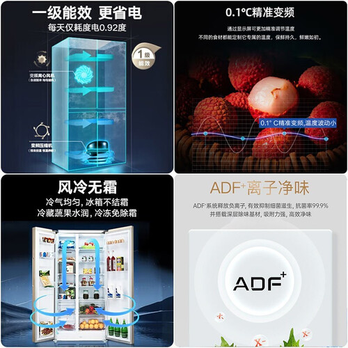 一级能效节能省电,不惧耗电使用更安心,内部多种分格设计,分类存放不同食物,不易串味,随时都能享受美味。