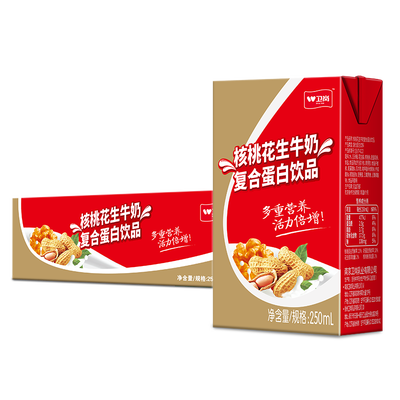 卫岗核桃花生牛奶,精选上等核桃花生作为原料,搭配牛奶一起更健康,再采用严苛的杀菌工艺,让牛奶的美味更纯正。