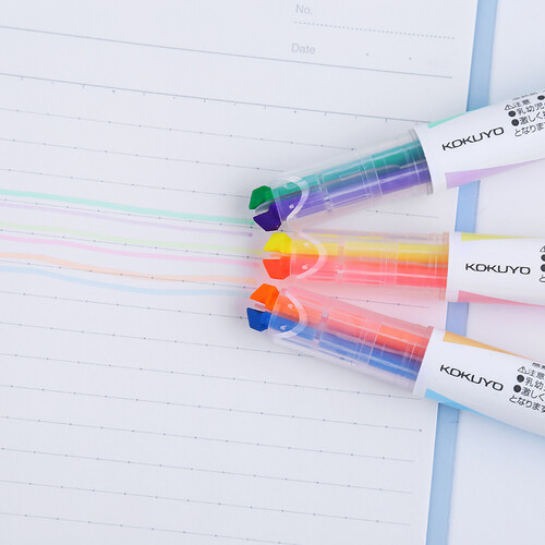 荧光笔为双色双头设计,一支笔拥有2种颜色,多用性很给力。笔身设计合理,握持舒适,不费劲。
