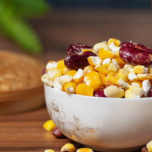 东北寒带黑土种植的杂粮,物理破碎玉米碴色泽金黄,营养丰富,玉米碴和红芸豆混合,熬粥稠滑,玉米清香四溢,红芸豆入口绵糯。