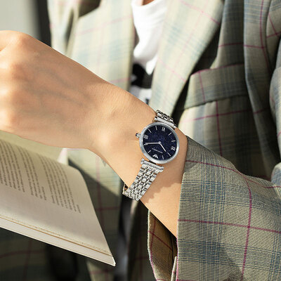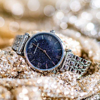 深蓝色的星空表盘,带来震撼视觉效果,营造浪漫神秘之感。表带采用蝴蝶扣的设计,开合方便,佩戴省时又省心。