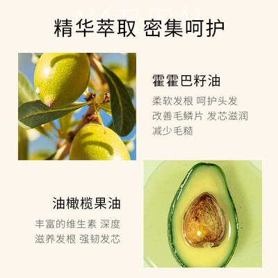 内含霍霍巴籽油,修护受损毛鳞片,改善干燥粗糙的发质。蕴含油橄榄果油,深层养护发丝,打造一头健康柔顺的秀发。