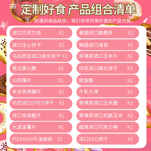 色彩亮丽颜值高的大礼盒,醒目吸睛,女友收到更易被感动。结合巧克力派、威化饼干、薯片等多种零食,包包不同,惊喜不断。