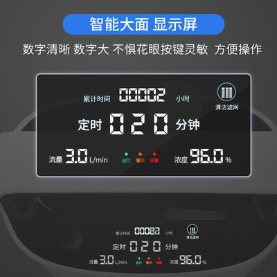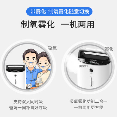 智能大面宽显示屏,读数清晰不惧老花眼。按键灵敏,一键操作方便快捷。支持双人吸氧,老爸老妈可以一起用。