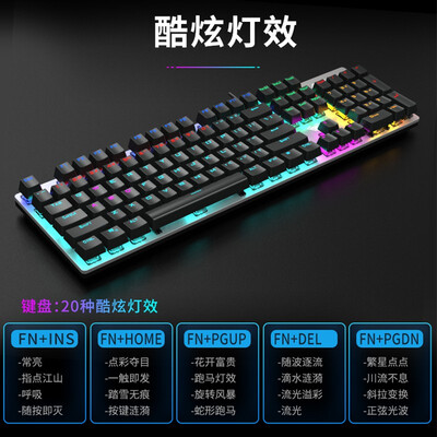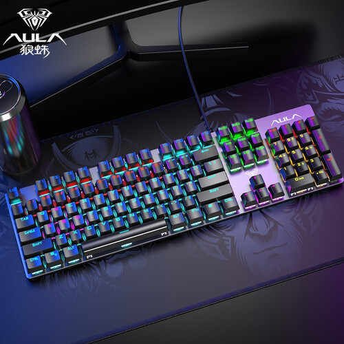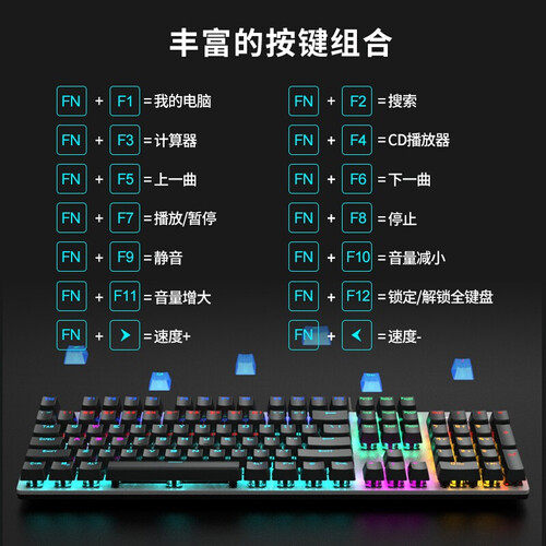 带有炫彩灯光,灯效可自定义调节,让键盘使用更炫酷。按键采用了防鬼104键无冲设计,即使多键同时操控,也能轻松响应无冲突。