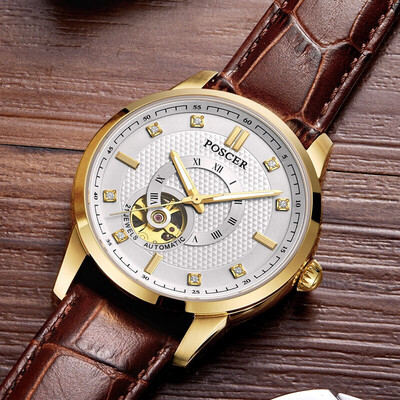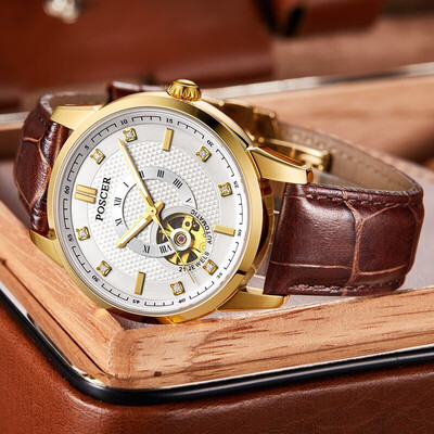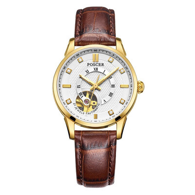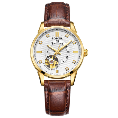 油压纹镂空表盘,搭配锆石字钉,整体造型层次丰富更显干练帅气格调。质感牛皮表带,柔韧耐折佩戴透气。