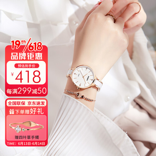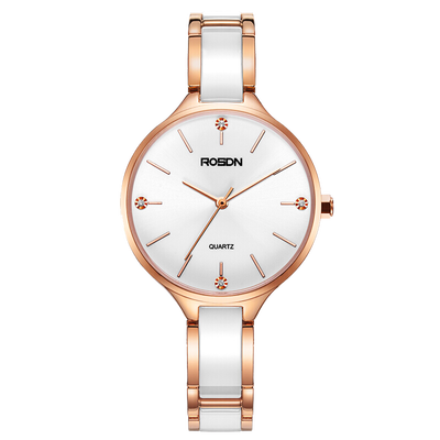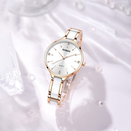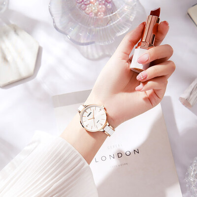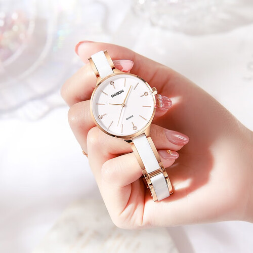 表镜采用人工合成蓝宝石玻璃材质制作,显得通透轻盈,耐磨防刮。表带采用陶瓷材质制作,具有温润的触感,舒适亲肤。