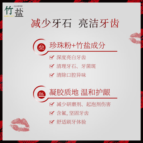 添加了珍珠粉成分,具有美白提亮的效果,使用后牙齿更加亮白,同时含有竹盐成分,能够温和磨砂,清除牙渍。