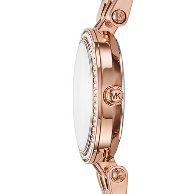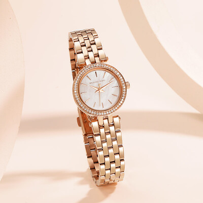 闪烁密镶水钻表圈,搭配耀眼金色,尽显华丽轻奢质感。经过多道工艺打磨的珍珠母贝表盘,通透度高,读取时间更清晰。