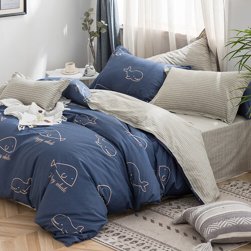全棉活性印花面料制作,材质透气柔软,色泽明亮不褪色,睡眠使用健康舒适。精细斜纹织造工艺,面料紧密细腻,柔韧不起球。