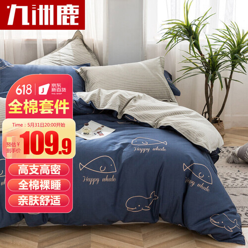 九洲鹿纯棉斜纹三件套