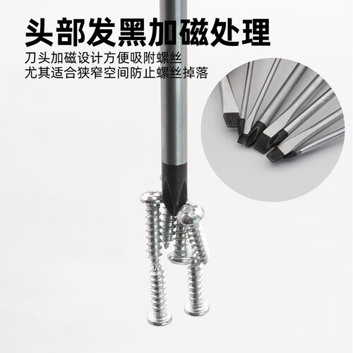 8件组套铬钒钢强磁螺丝刀,可应对不同家居维修作业,拆拧有力高效率。头部加强磁设计,便于吸附螺丝等金属零件,不易丢失。