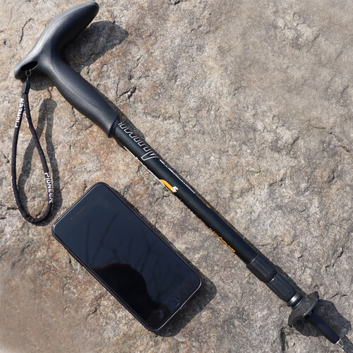 登山杖在折叠之后长度仅为49厘米,方便放在背包内携带。字母花纹进行点缀,简单大方,彰显不凡品质。