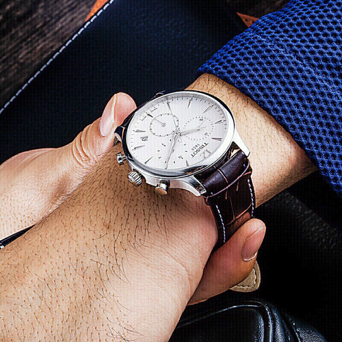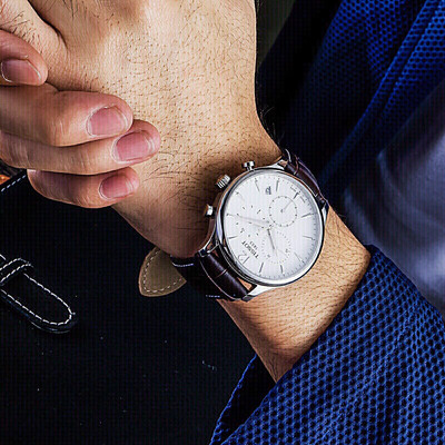 采撷传统经典的简约设计,以复古雅致的色调展现低调内敛的涵养。采用银色的表盘,雅致经典。皮质的表带佩戴舒适。