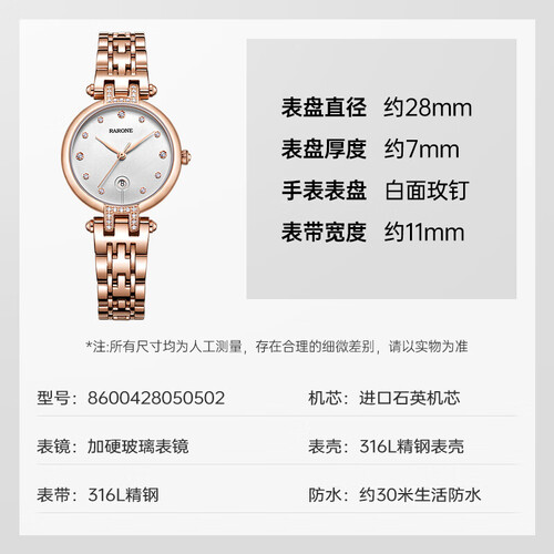 采用太阳纹工艺表盘,精致美观,独具匠心,舒适贴合手腕,轻柔无负担,精刚实心表带,耐磨扛刮,亲肤低敏,佩戴舒适。