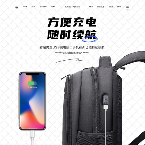 这款电脑包采用防泼水面料,不惧雨天,表层柔软手感,里层柔韧舒适,无惧风雨。3D透气背板,柔软舒适,科学减负。