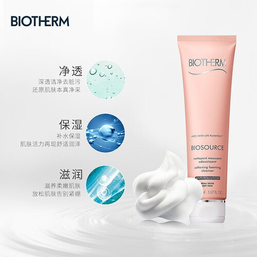 淡粉色的乳霜质地,揉搓出的泡沫细腻柔和绵密,能温和清洁面部彩妆残留和肌肤脏污,同时为肌肤补充水分,肌肤净透水润。