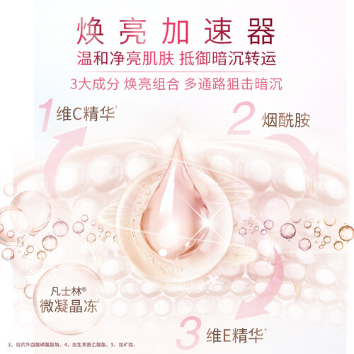 蕴含多重维生素,能改善皮肤暗沉干燥的状态,让肌肤展现白皙光彩。深入肌肤深层,锁水修护,润泽肌肤。细腻的乳液质地,不油腻。