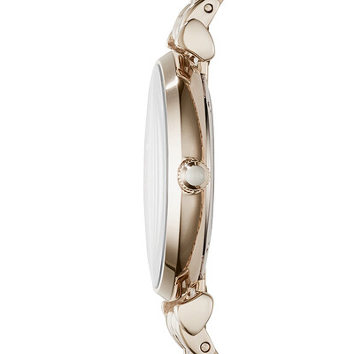 纤薄的表身设计,体现做工的精湛,佩戴起来轻松无压力。金色钢制的表带,尽显女性独特的感性魅力。
