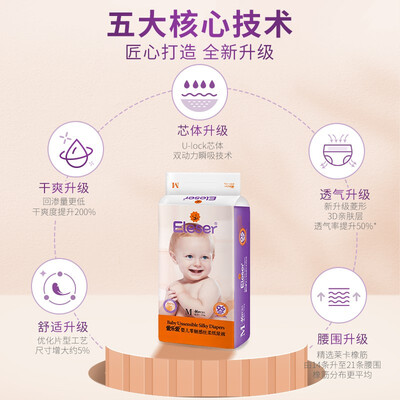 纸尿裤加入三条尿湿显示带设计,当尿裤吸收到尿液后,尿显线便会转变颜色,可提醒妈妈及时为宝宝更换尿裤。