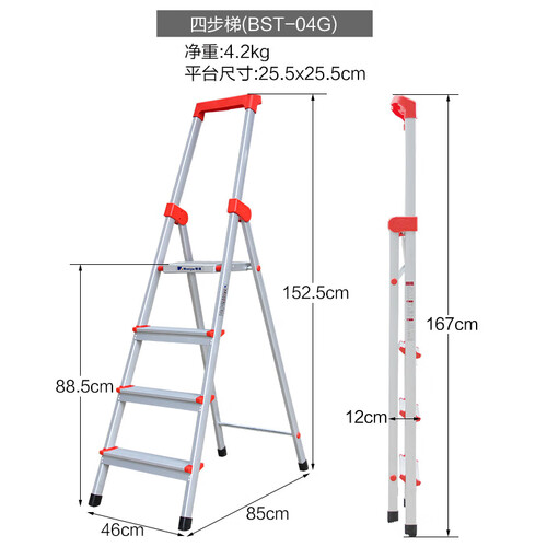 梯子底部配有防滑脚垫,稳固不易移位,无需为安全问题忧心。采用三角力学设计,稳固不易摇晃,家人用得更安心。
