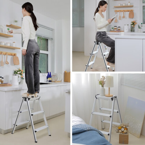 实测4倍安全载荷压力测试,梯身无损坏,抗压承重好,喷涂烤漆,给家居生活添份色彩,收合简单,单手既可操作,方便日常使用。