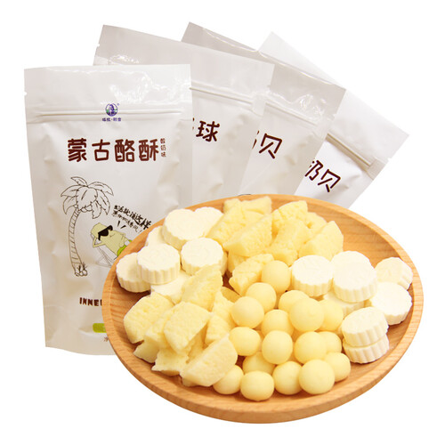 消费者可尽享四种口味的奶制品风味,酸奶酪酥口感浓郁香醇、浓香奶球口感细腻柔软、蒙古奶贝浓醇鲜香、含牛初乳奶贝营养丰富。