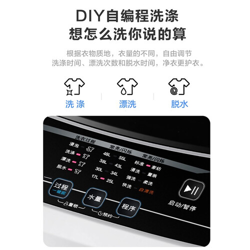 洗衣机水流模仿了高压水枪喷射,漂洗效果显著的同时,还避免出现内筒残留污垢的问题。而10分钟快洗的功能,更加高效化。
