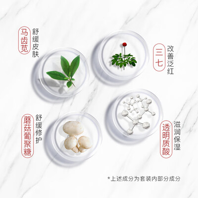 护肤套装中蕴含马齿笕成分,可以有效的舒缓敏感,改善肌肤的不适感。辅之透明质酸钠成分,补水锁水,强韧的呵护肌肤。