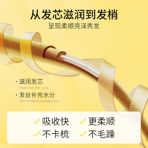 植物萃取精华,可以进行深度滋养,有效抚平毛糙,让秀发更加自然柔顺。独特的水解角蛋白,有着良好的亲和性。