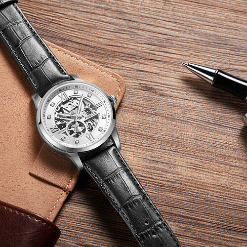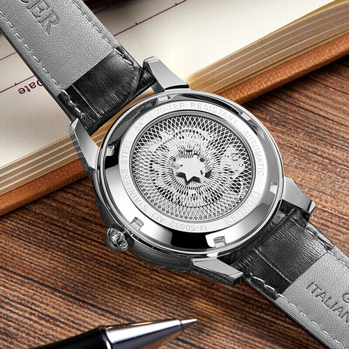 采用合成蓝宝石玻璃镜面,防磨耐剐蹭,让表镜历久弥新。全镂空的表盘一览机械律动之美让你爱不释手,靠实力圈粉。