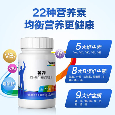 善存矿物质片蕴含22种维生素和矿物质,科学配比,还特别加强5种特需营养,帮助弥补膳食营养摄入不足,补充关键营养元素。