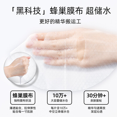 蕴含有三重玻尿酸精华,小分子结构容易被肌肤吸收,打造出充盈饱满的肌感。采用蜂巢膜布,具有良好的弹性,能够贴合不同的肤质。