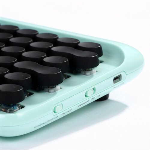 采用圆点键帽设计,具有触感更舒适的凹陷弧度,让打字更轻松。搭配青轴轴体,段落感强,反馈明确,享受更纯粹的打字体验。