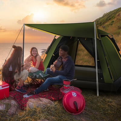 这款帐篷是加大空间,可以同时容纳5至6人,非常适合一家人或者一群好友出游。天幕外账可以作为凉亭,遮阳而且视线又开阔。