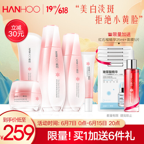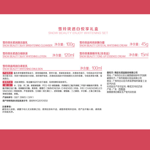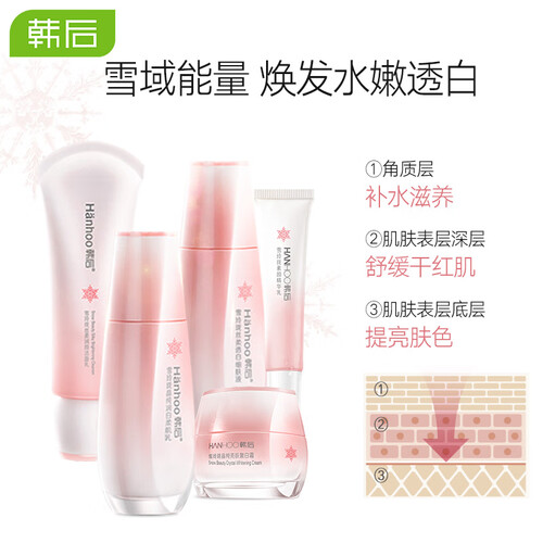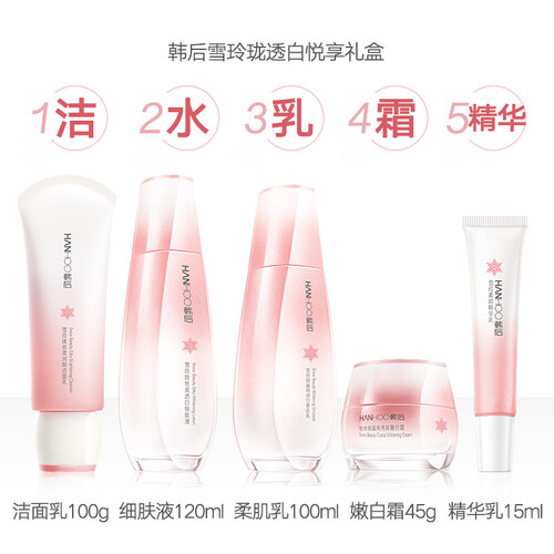 内含天然矿物养分和冰川高活性水分子,给你一整套美白方案。清洁、调理、滋养、修复、提亮,轻松五步展现透亮嫩白肌肤。