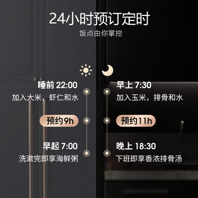 采用IH电磁加热的方式,带来柴火饭一般的香甜口感。支持24小时智能预约,到点立享美味,并且还配有5L大容量,多口之家也适用。