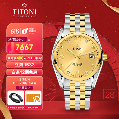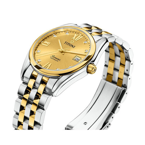表镜采用蓝宝石水晶玻璃,硬度较高,有效抵御日常刮花。不锈钢间金表带,表面光滑闪亮,彰显轻奢气息。