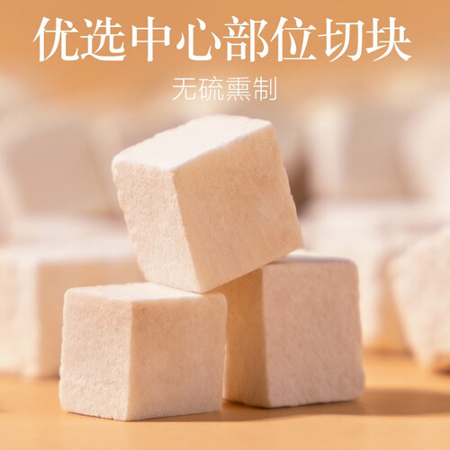 选用湖北原产上等茯苓切块而成,颗粒整齐,边长在5-8mm左右。也可打粉做网红自制面膜,美颜滋补双效合一。