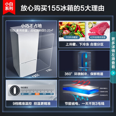 采用环保高效压缩机,节能又省钱,工作效率高噪音小,享受宁静致远的生活;7档温控可随季节调节,可拆卸密封条清洁方便。