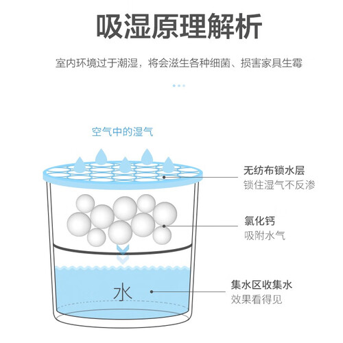这款盒装除湿剂,大容量,使用方便,打开盖子,撕掉铝膜就可以直接使用,富含超强除湿粒子,防霉效果显著,集水看得见。